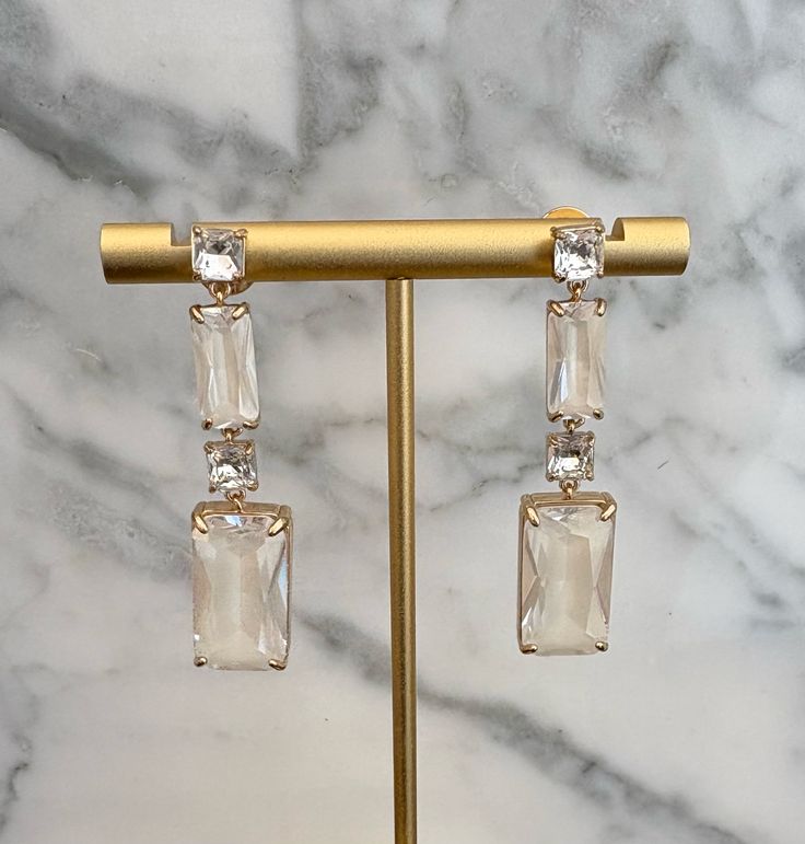 These elegant drop earrings have a trio of sparkling clear stones set in a gold-tone frame. Each stone catches the light beautifully, creating a timeless and classy look