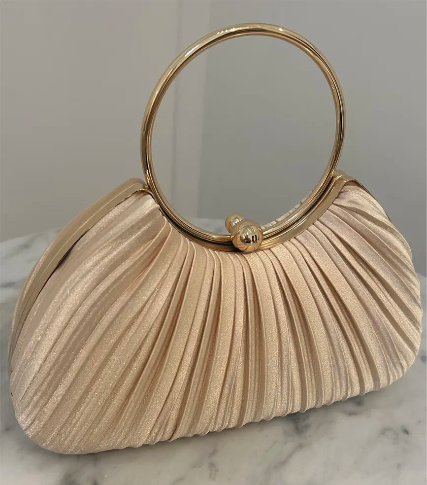 Sophisticated and timless this gold pleated clutch features and elegant and vintage look. With it's graceful feautures this clutch will pull any look together to make it simply timeless.